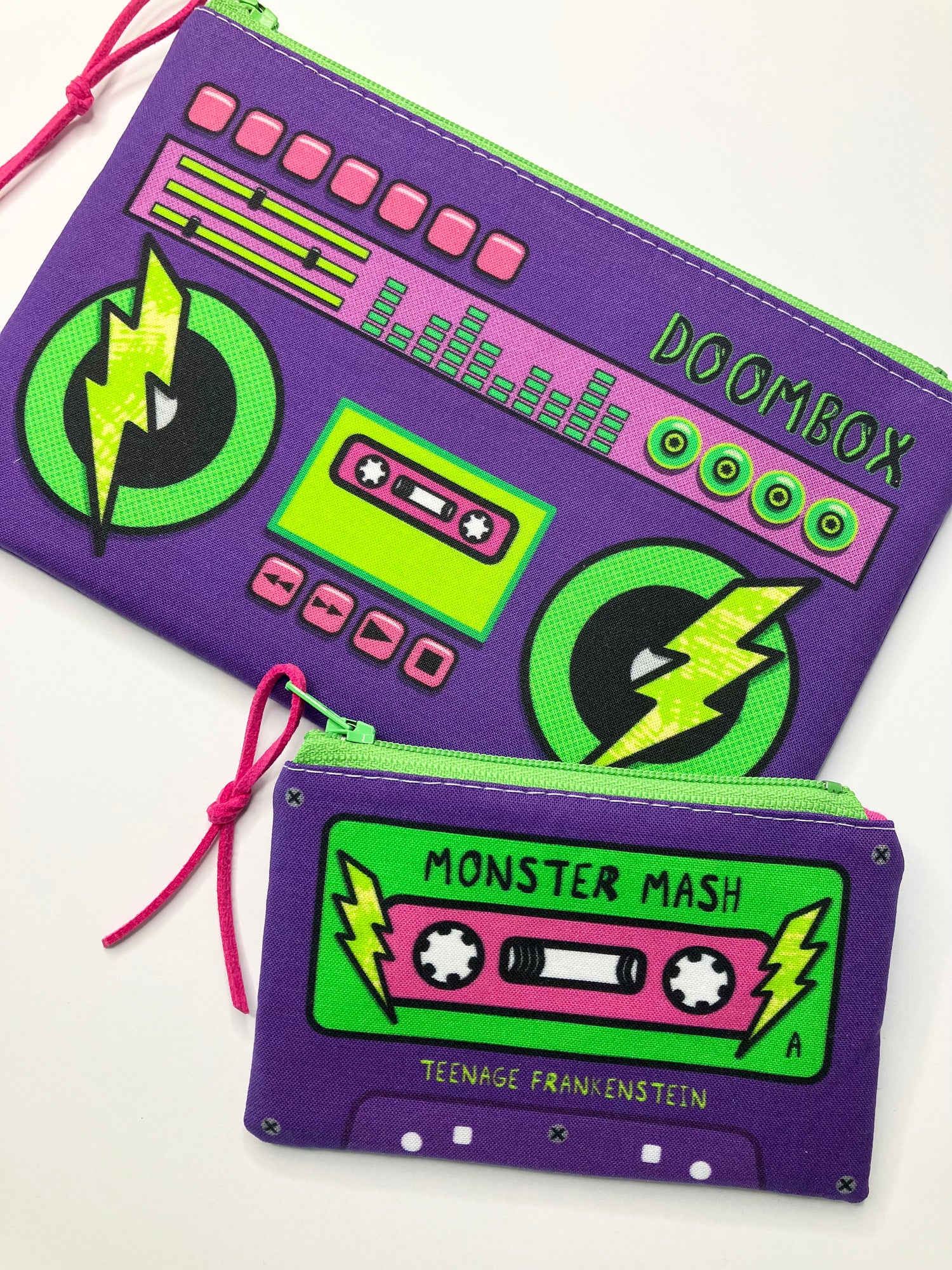 Crank up the volume! Doombox zipper pouches are perfectly sized to store pens and markers, purse loot, or a standard-sized box of tarot cards.