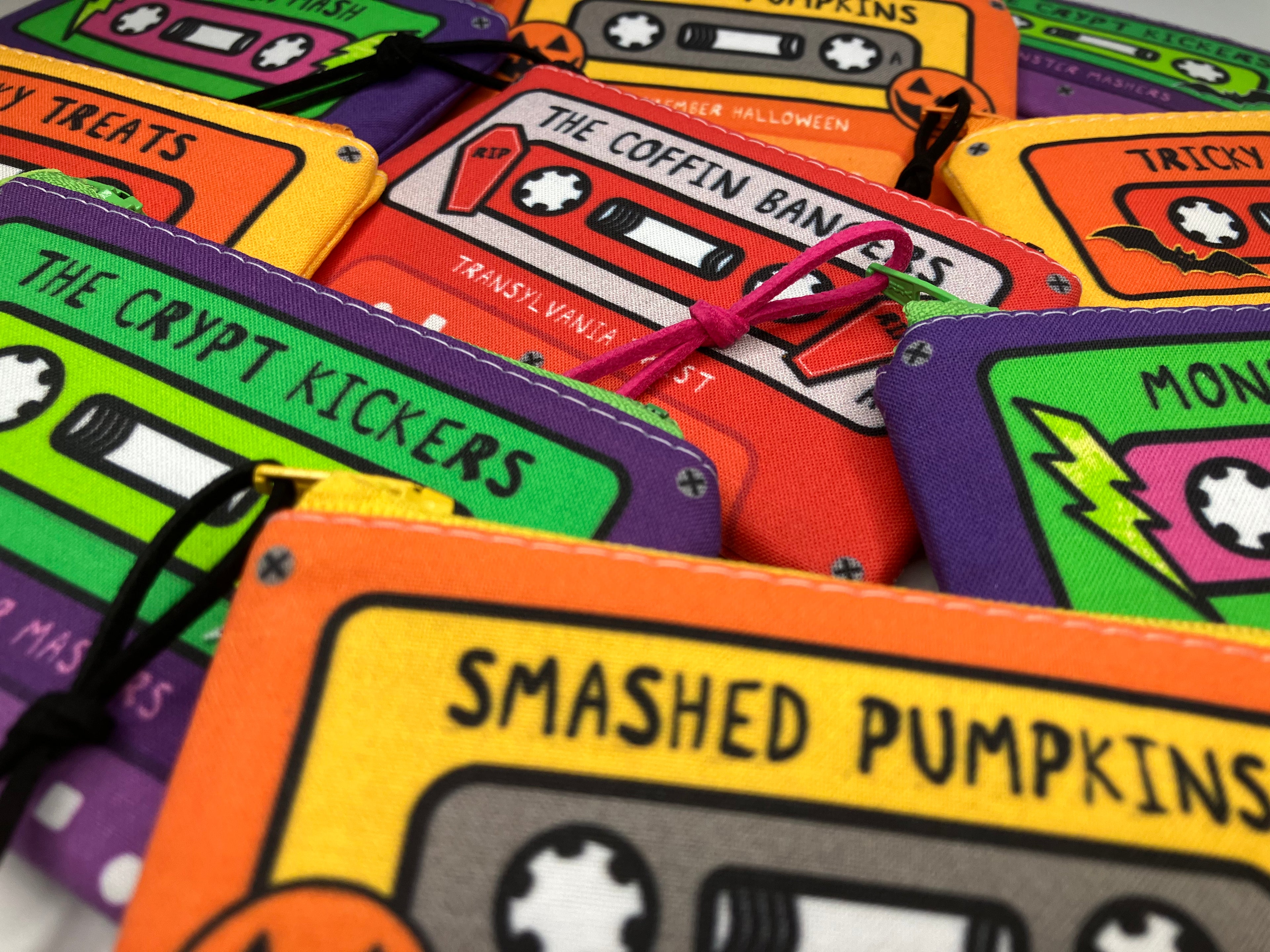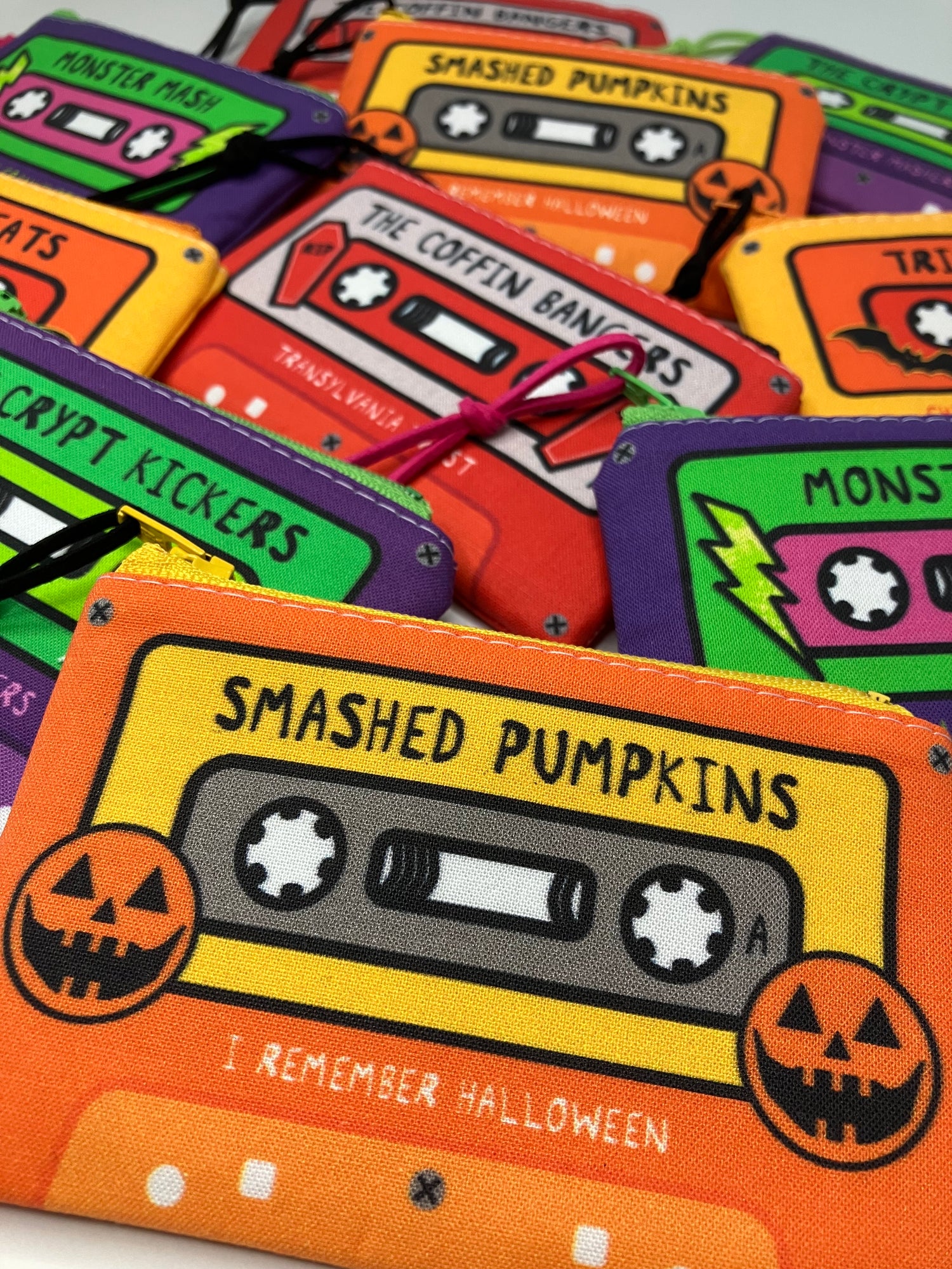 Doombox bags and Spooky Tunes coin pouches are Sweet October originals. You'll only find them here! They were designed as counterparts to one another, and look better when they're together. (Aww!)